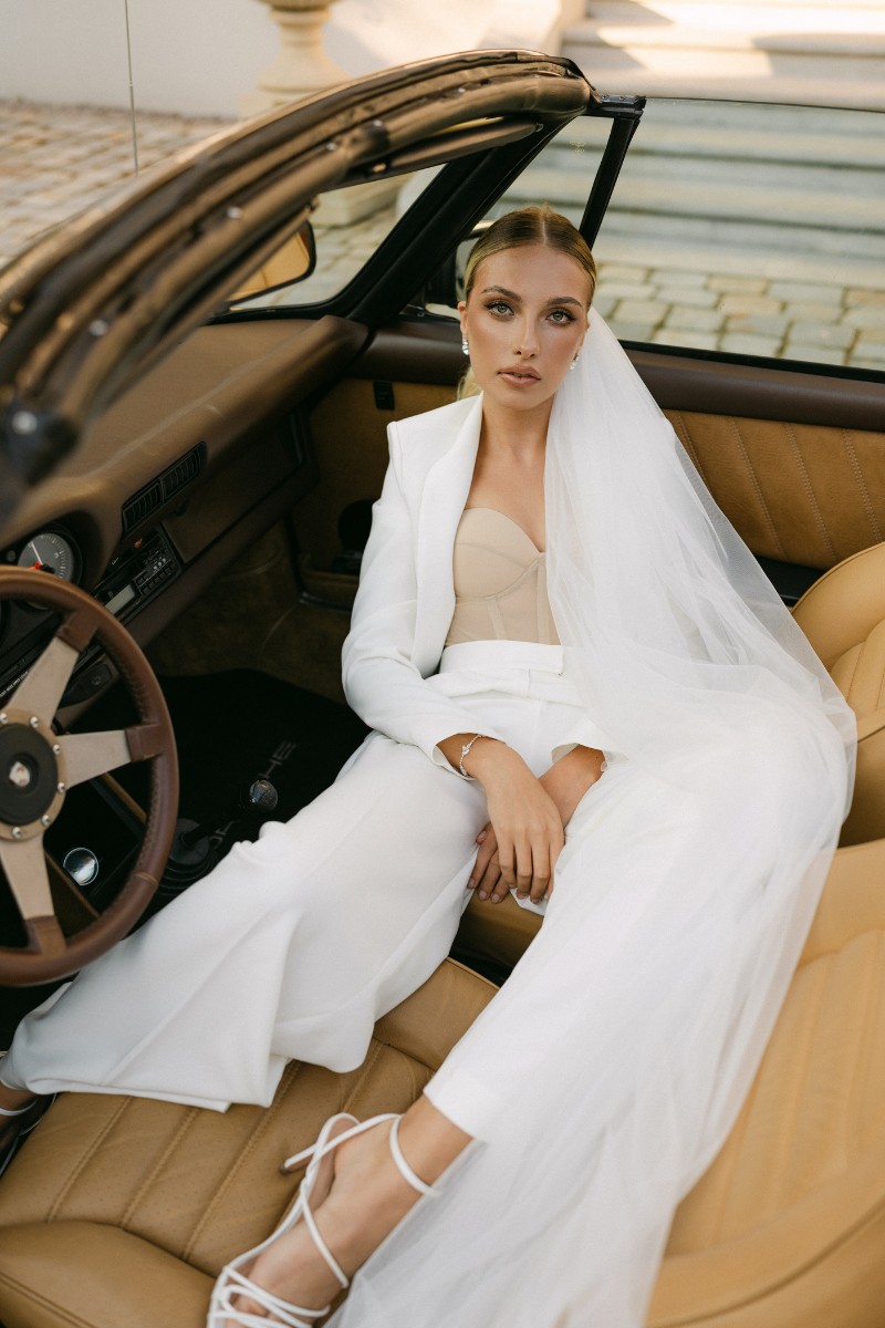 Ob Jumpsuit oder Hosenanzug zur Hochzeit – diese Looks setzen auf Charakter statt Konvention. Sie lassen Raum für Bewegung, für echten Ausdruck, für eine Brautmode, die keine Rolle spielt, sondern Persönlichkeit zeigt.