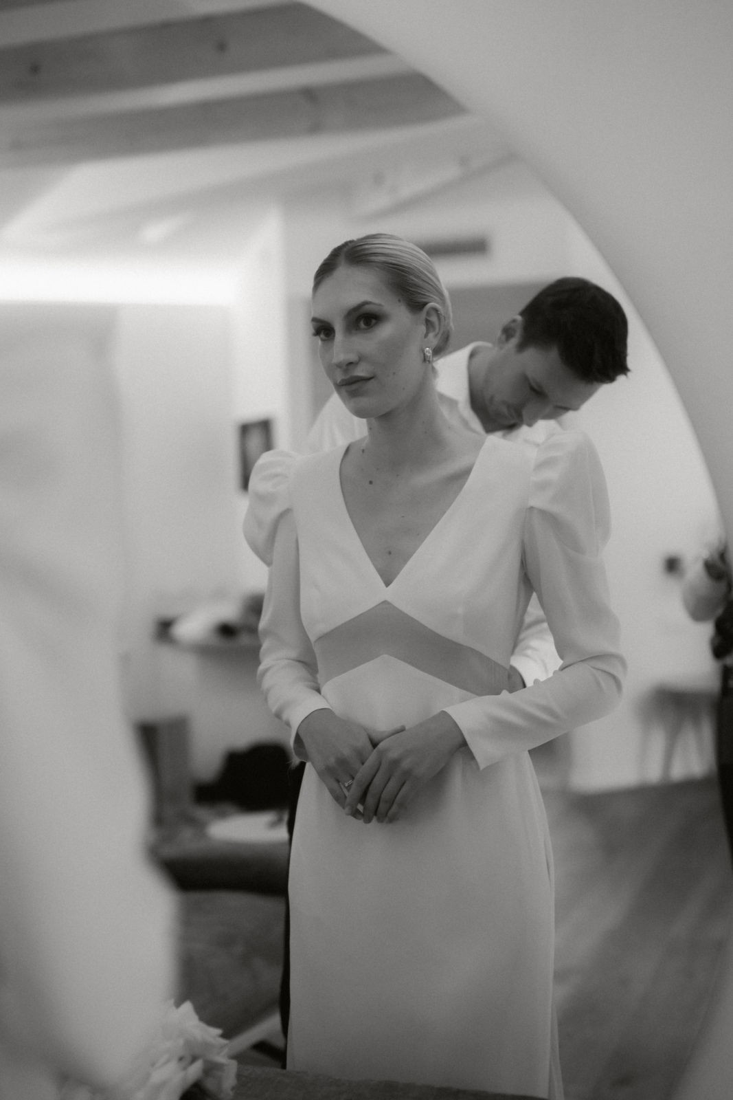Da wir alle Schnitte an deine Maße anpassen, können wir nahezu jedes Brautkleid, jeden Rock oder jede Hose aus unserer Kollektion als Umstandskleidung umsetzen – ideal, wenn du schwanger heiratest und dir ein Kleid wünschst, das sich echt nach dir anfühlt. Die reduzierten, charakterstarken Designs von Cosmopolka verbinden hohe Bewegungsfreiheit mit weichen, hochwertigen Materialien, damit du dich auch mit wachsendem Bauch den ganzen Tag über wohl und frei fühlen kannst.