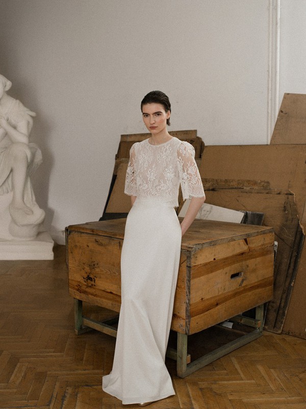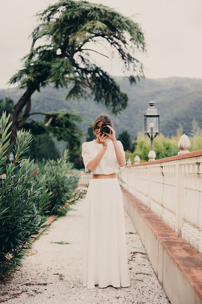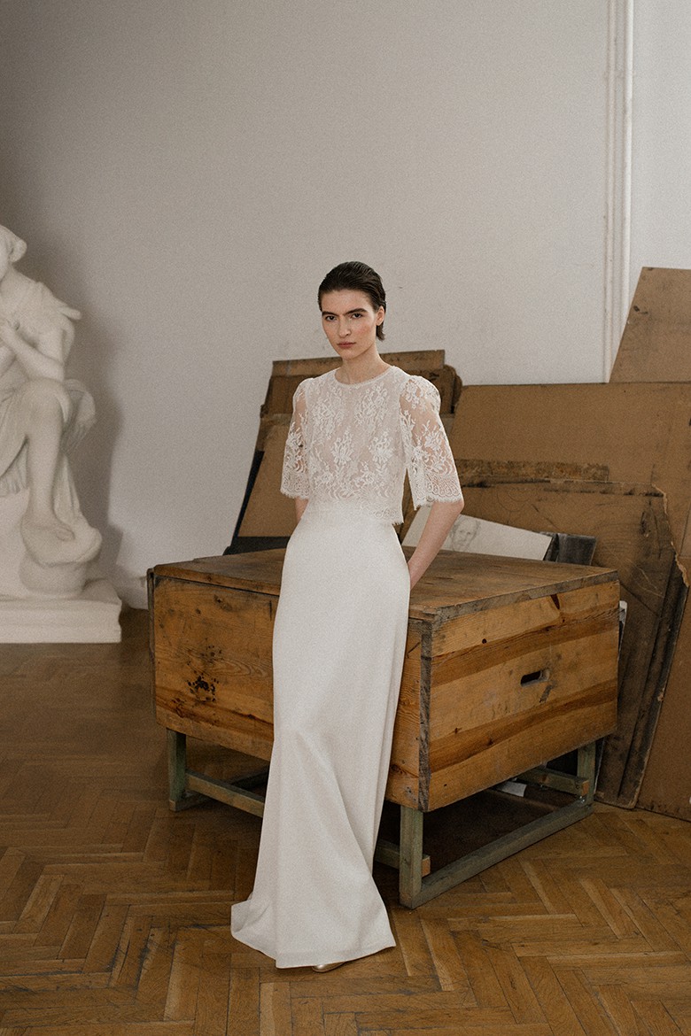 Bräute können mit verschiedenen Stilen spielen, etwa einem schlichten Top mit einem voluminösen Rock oder einem verspielten Spitzenoberteil.