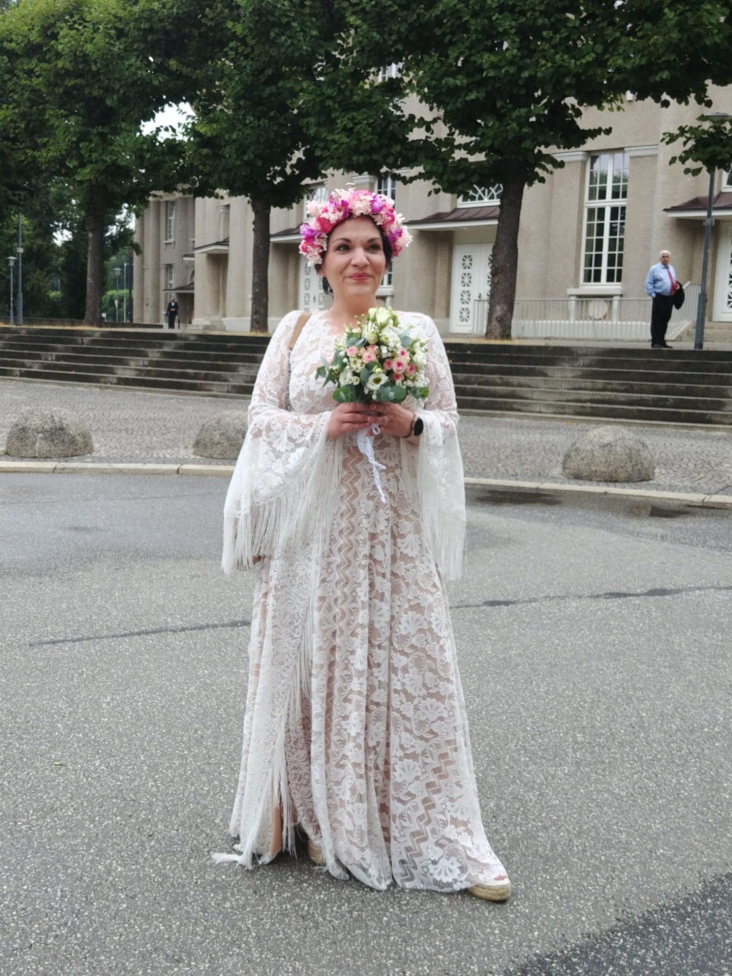 Auf der Suche nach einem modernen Zweiteiler für meine Hochzeit bin ich bei Magda fündig geworden. Sie hat eine wunderschöne Auswahl aus ganz besonderen Kleidern und Outfits in toller Qualität und kennt ihr Handwerk ganz genau. Schon die Anprobe mit ihr hat sehr viel Spaß gemacht und herausgekommen ist ein ganz besonderes, individuelles Outfit, in dem ich mich unglaublich wohl gefühlt habe und für das ich unglaublich viele Komplimente bekommen habe. Liebe Magda, vielen Dank für deine liebe Art und deine großartige und professionelle Beratung!